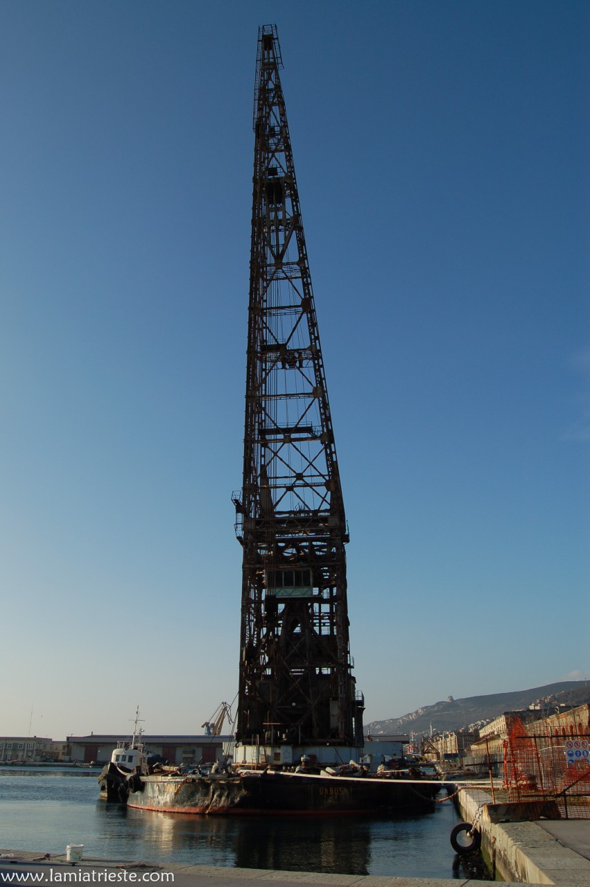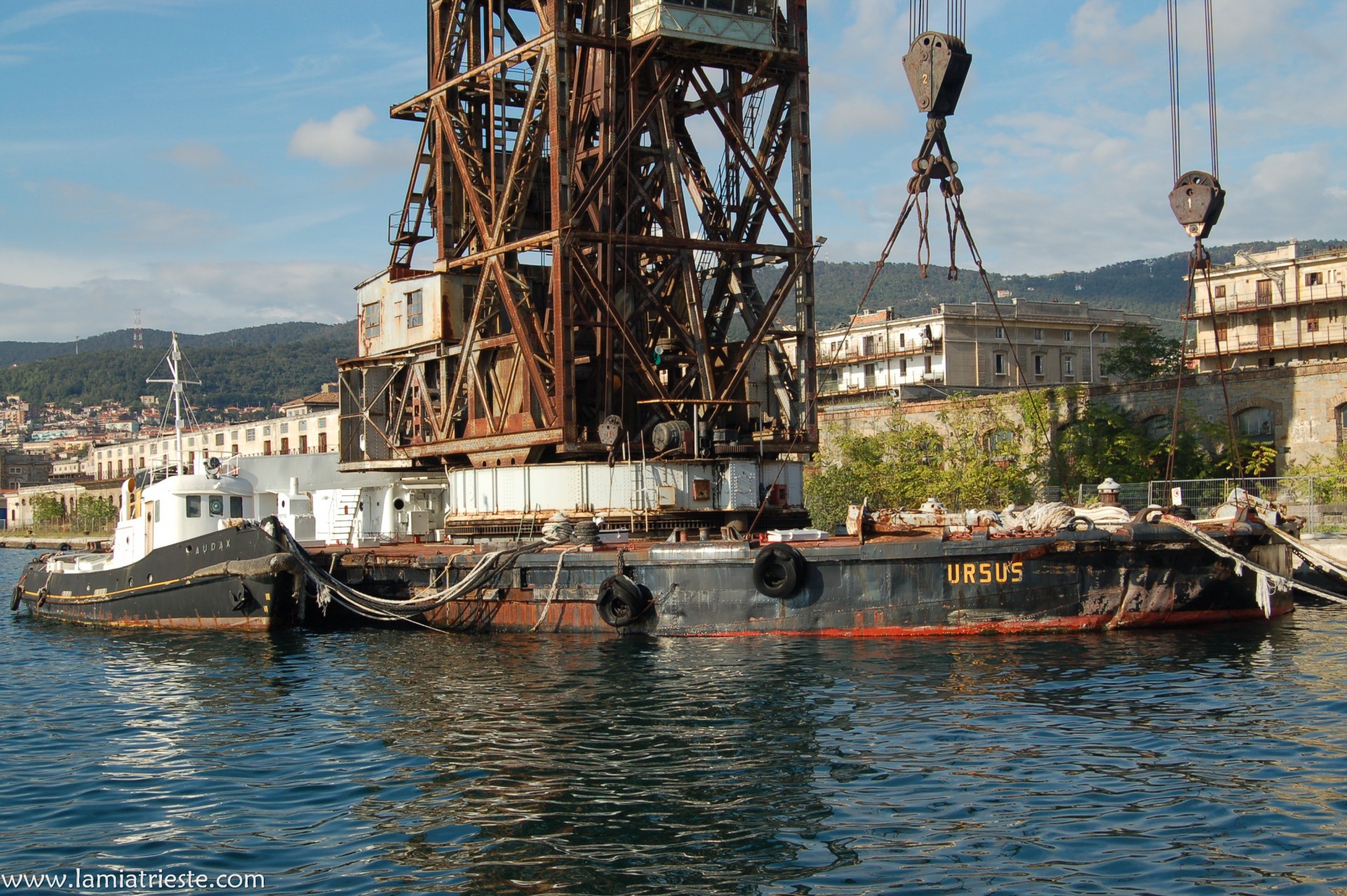 Quando in auto scendo per via Valdirivo per arrivare sulle rive l’Ursus – questa enorme gru posta sopra una chiatta e quindi trasportabile in qualsiasi punto del mare – è là a farsi ammirare nella sua possanza. Qualcuno l’ha chiamato la torre Eiffell di Trieste, una torre di 75 metri di altezza con le radici nel mare.