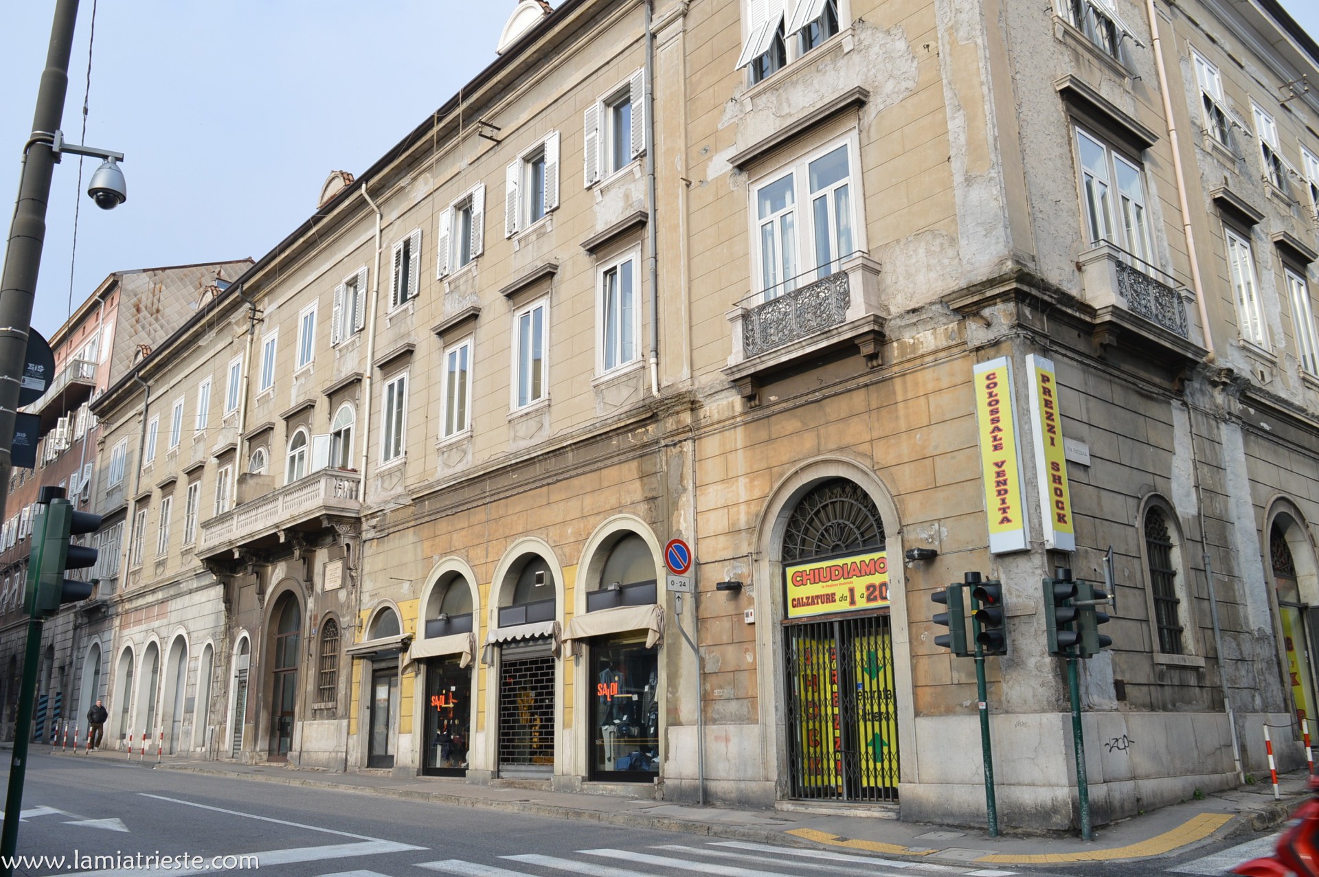 Poco prima del liutaio, al n. 43, una casa de abitazion. Ma a suo tempo la iera un casin, sì insoma, un bordel o casa de toleranza o casa chiusa o come che te la vol ciamar. Una delle poche assieme a quella de via Bonomo fora de la zona de Cavana. E pò, dopo la fine dei casini, iera dispensario antitubercolosi e pò per anni in semi abbandono prima de diventar casa de apartamenti. Xe la casa che un se trova di fronte quando che se sali in via Udine da via Tasso.