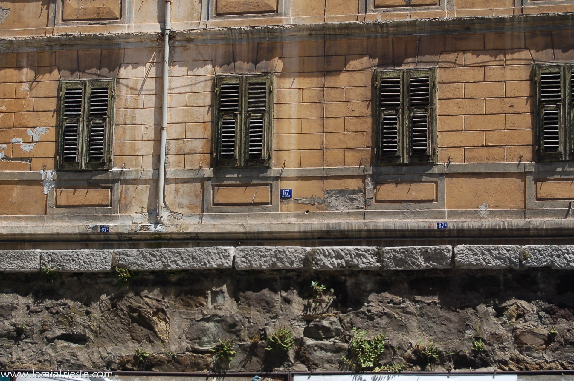 Qualche casa in completo abbandono (n. civici 67 e 69) tacade alla casa più rafinada e nobile della via, quella del n 71. Un bel contrasto.