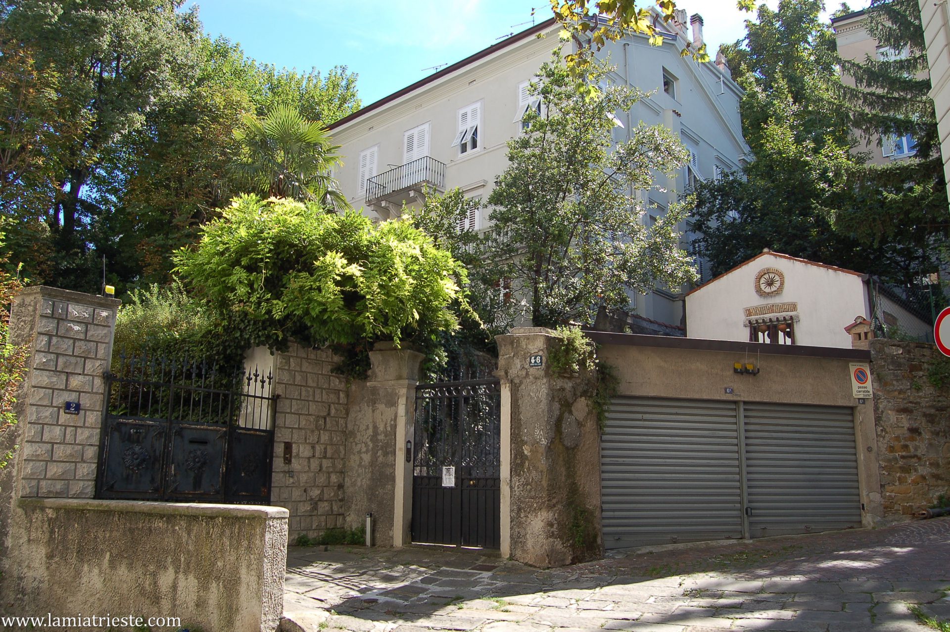 Arrivando dalla via Tigor si nota, come prima casa sulla sinistra del … vicolo, il muro posteriore di una vecchia villa il cui portoncino porta il n. 16. Lì per molto tempo ci fu la sede del Consolato Inglese (1) e se avete la fortuna di trovare il portoncino aperto e senza la presenza di una coppia di anziani ( molto scorbutici, provenienza Paesi dell’Est) potrete ammirare sul muro della scala che porta al giardino, lo stemma del consolato inglese. Un oggetto prezioso che forse non starebbe male da qualche altra parte (per es. al Consolato Inglese ora in via Roma 15) prima che il tempo lo deteriori del tutto.