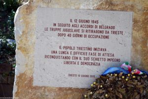 “il 12 giugno in seguito agli accordi di Belgrado le truppe jugoslave si ritirarono da Trieste dopo 40 giorni di occupazione. Il popolo triestino iniziava una lunga e difficile fase di attesa riconquistando con il suo schietto impegno libertà e democrazia. “
