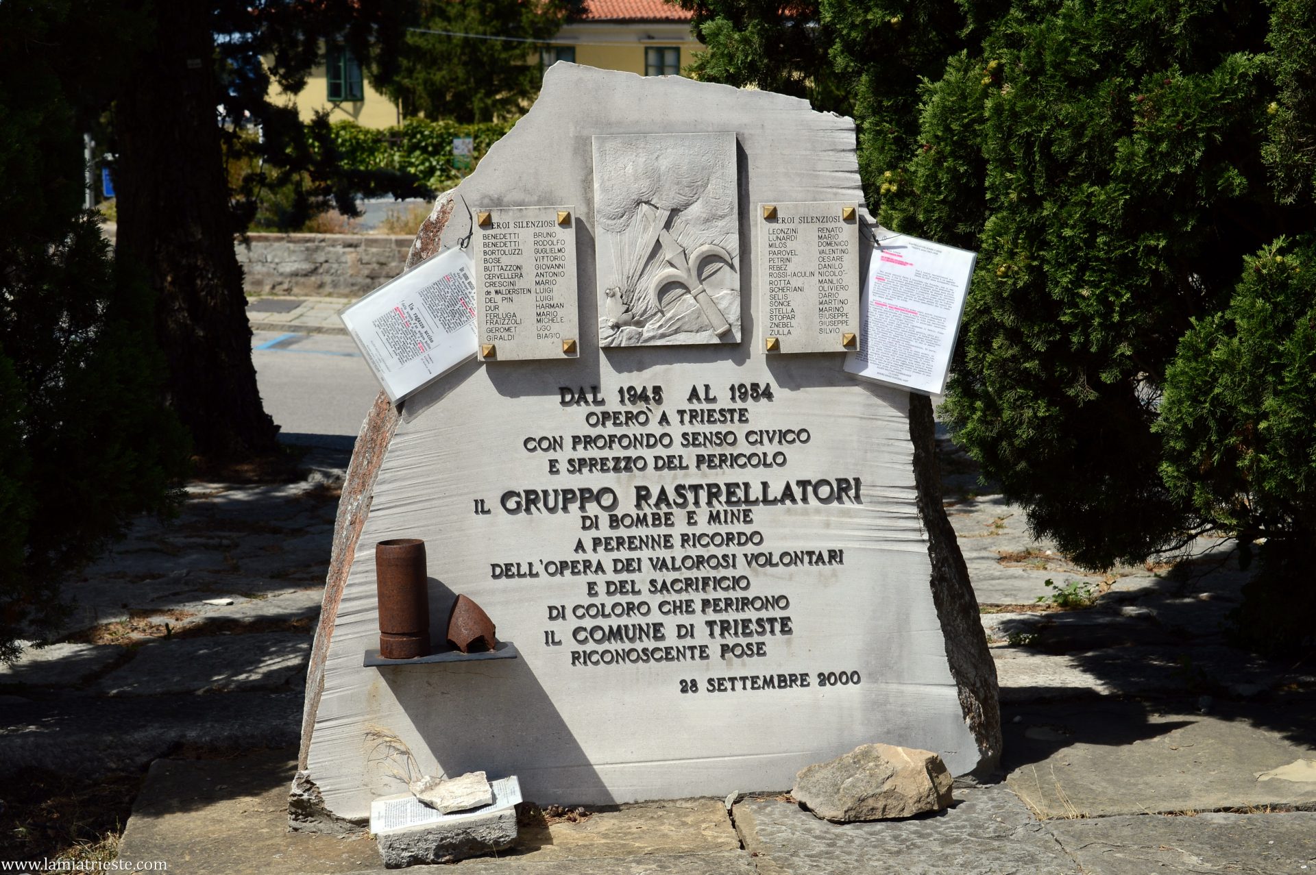 Qualcuna più grande come il proclama del Generale Diaz sul muro del Castello e quella infissa nel terreno del parco a bordo via Capitolina che riporta le motivazioni per la medaglia al valor militare per la città di Trieste.
