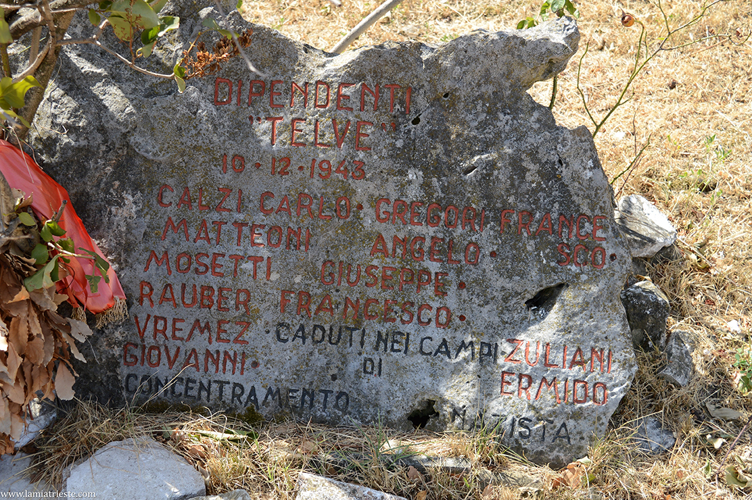 Come ho già detto, l’impatto emotivo di queste lapidi messe a cura di associazioni è decisamente minore di quello delle semplici pietre carsiche con nomi e luoghi spesso diventati difficili da decifrare. Come se l’oblio volesse scendere forzatamente su questi ignoti morti e per converso far risaltare le memorie più collettive delle lapidi.